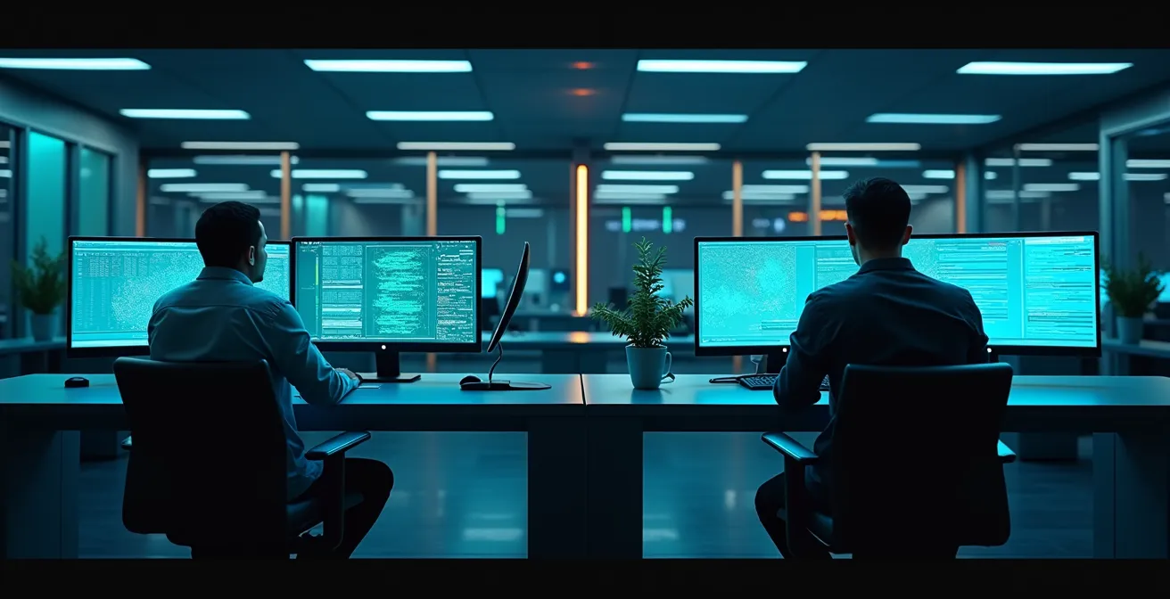 L’intelligence artificielle intervient ici non pas comme un remplaçant, mais comme un multiplicateur de force. Capable de traiter en continu des volumes massifs de données 24/7, l’IA effectue un premier tri intelligent. Elle apprend les schémas normaux de fonctionnement et signale uniquement les déviations statistiquement significatives. Ce filtrage permet de réduire drastiquement le bruit, libérant ainsi le temps précieux des analystes. Ces derniers peuvent alors passer d’un rôle de « gestionnaire d’alertes » à celui de « chasseur de menaces » (Threat Hunter), se concentrant sur des investigations complexes et des analyses à forte valeur ajoutée.
