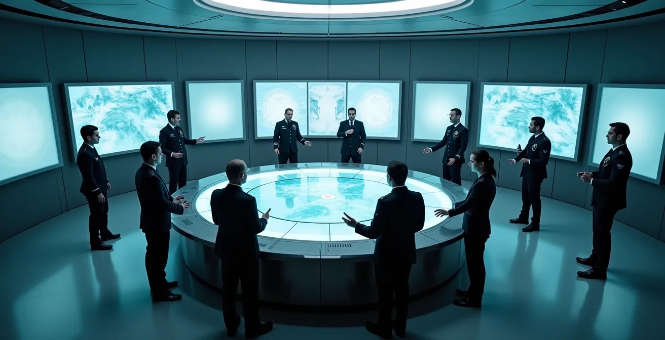 Pour créer ce stress salutaire, il faut dépasser les scénarios linéaires. Un exercice efficace est celui qui intègre le « brouillard de la guerre » : informations partielles et contradictoires, pannes techniques, pression médiatique et dilemmes moraux. L’objectif est de tester la résilience du système de commandement dans son ensemble, pas seulement la compétence individuelle de chaque participant. Pour cela, il est indispensable de disposer d’une équipe d’animation (« White Cell ») et d’une équipe jouant l’adversaire (« Red Team ») créatives et impitoyables.